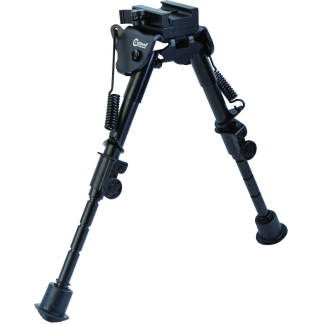 The Allen Company’s Bozeman Bipod features a sling swivel mount designed to attach to a rifle using the front sling swivel stud. The sling can even be directly attached to the bipod. No special tools are required. Legs fold easily for carrying. Height adjustable from 6″ to 9″.