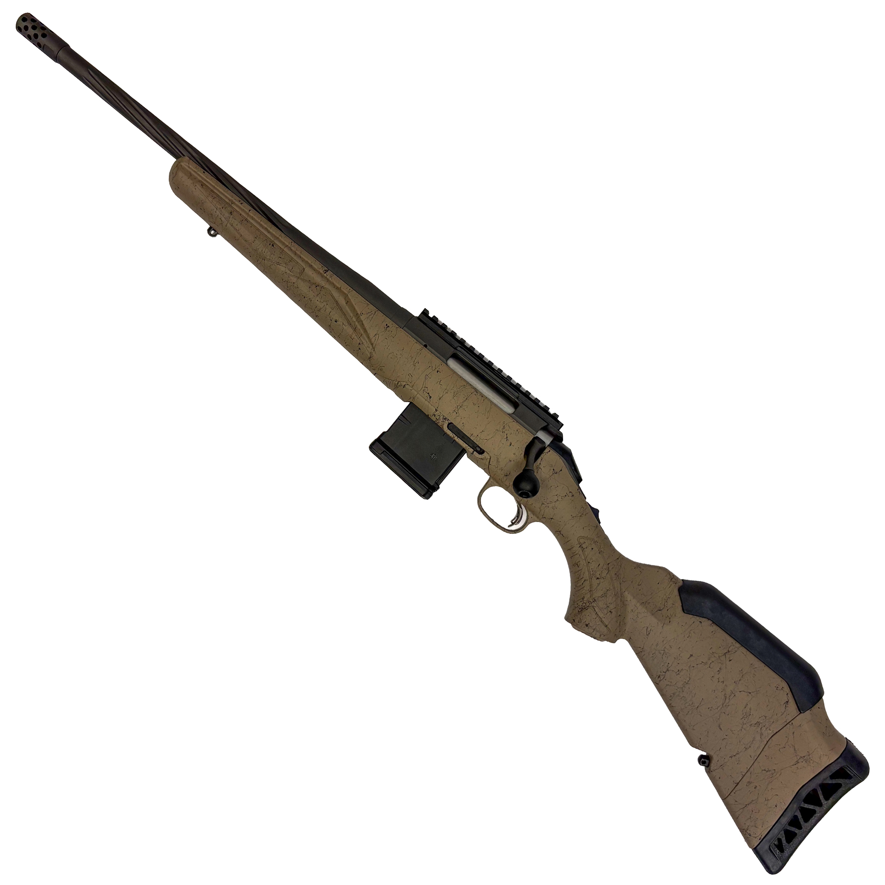 Ruger American Rifle Gen II Ranch 5.56 Nato LH Left Hand; 16.10″ Spiral Fluted Cobalt Barrel; FDE Splatter Gen II American Stk; 10rd Capacity; One Piece Picatinny Scope Base; 1 Magazine