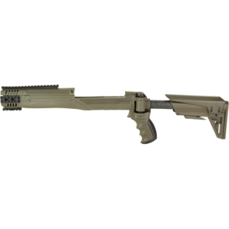 The Archangel AA556 conversion stock will make your Ruger 10/22 mimic the look and feel of an M-4 flat-top carbine. This super tough and feature packed stock includes an adjustable six position buttstock that adjusts from 10.25″ to 14.25″ length of pull with four steel QD hardpoints molded in, ergonomic finger grooved pistol grip with a locking storage compartment, a full length Picatinny top rail, a lower forend Picatinny rail, and hidden stock extension storage compartment. Constructed of high strength, carbon fiber and glass reinforced tan polymer, the AA556 will withstand a lifetime of hard use. Will fit and free-float all standard cut 10/22 barrels and bull barrels up to .920 in diameter. Extra items include a polyurethane bolt buffer, an extended paddle style magazine release, and a polymer muzzle device that facilitates attachment of gas-block height AR-15 front sights directly to OEM barrels (sights not included) This model does NOT include the display bayonet. 2.35 lbs. Lifetime Warranty. Made in USA.