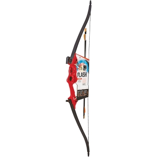 The Bear Archery Valiant comes ready to shoot with finger rollers arrow rest two Safetyglass target arrows and a target. Recommended age range for children is 4 to 7 years old. This 34” long bow is right-handed and features durable composite limbs with a 6.5-inch brace height maximum 16.5 lb. draw weight and a 14- to 18-inch draw length range.