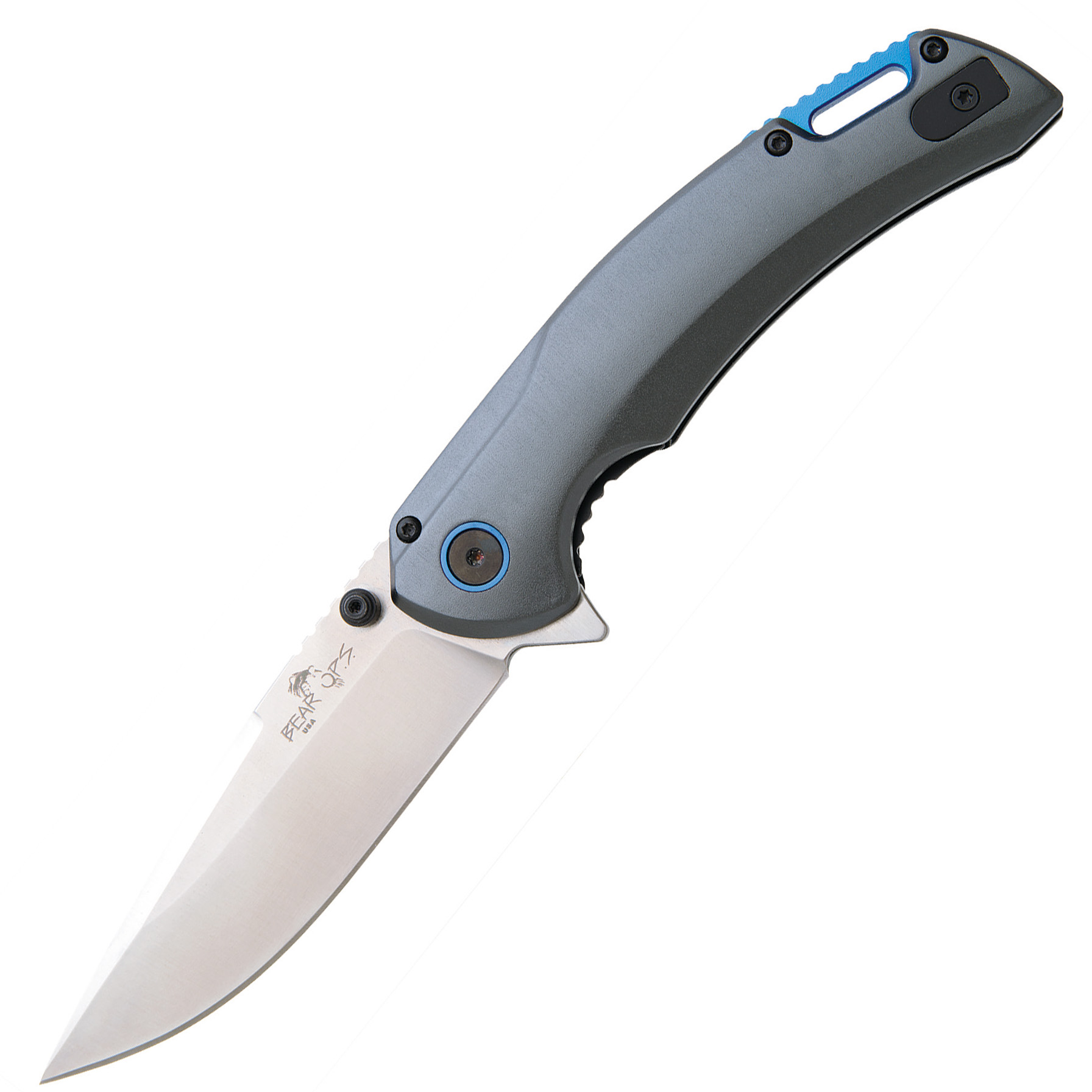 BEAR & SON LOADOUT 3.5″ DRP/STN/GRAY & BLUE LOADOUT I GRAY & BLUE ALUMINUM HANDLE 14C28N SATIN MODIFIED TANTO BLADE BEAR OPS – Made in the USA with USA manufactured parts, Materials and Workforce.