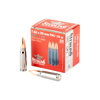 Some of the finest brass cased 7.62x39mm you’ve ever seen. Made in Serbia, the Belom 7.62x39mm 123 Grain is a Full Metal Jacket round. These are packed in an ingenious polymer tower with the Belom crest molded on the top, 20 rounds to the box.