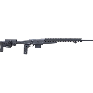 Versatile hunting rifle with spiral fluted barrel and bolt body. Gray/green composite stock. Shorter barrel lengths optimized for suppressor use. Detachable box magazine. Two-piece bolt handle.