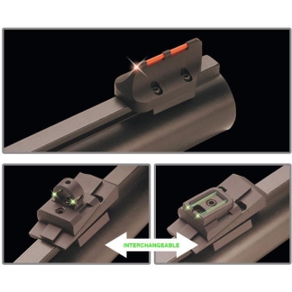 The Starvation Bead has five .029 pins, the top pin glows in complete darkness. The glowing aperture provides perfect sight alignment in low light conditions. Includes a sight light and level.