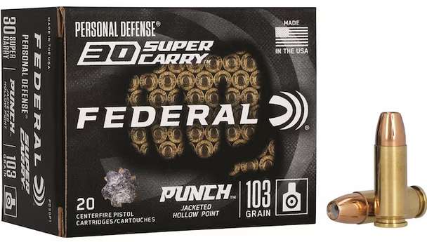 - Punch jacketed hollow-point bullet design provides a balanced mix of effective penetration and expansion