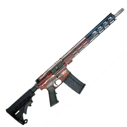 GLFA 223 WYLDE AR15 RIFLE FREEDOM BATTLEWORN AMERICAN FLAG CERAKOTE FINISH; 16″ STAINLESS BARREL; 15″ M-LOK RAIL; FORGED UPPER/LOWER; M4 COLLAPSIBLE STOCK; 1X30RD MAG