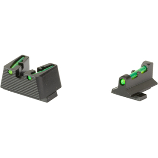 HIVIZ(R) Interchangeable Front and Rear Target Sight Set for Glock pistols. Fits all Glock models. Rear is .224″ tall, notch is .140″ wide x .125″ deep; Front is .215″ tall x .120″ wide. Front sight includes Green, Red and White replaceable LitePipes; rear sight includes Green, Red and Black replaceable LitePipes.