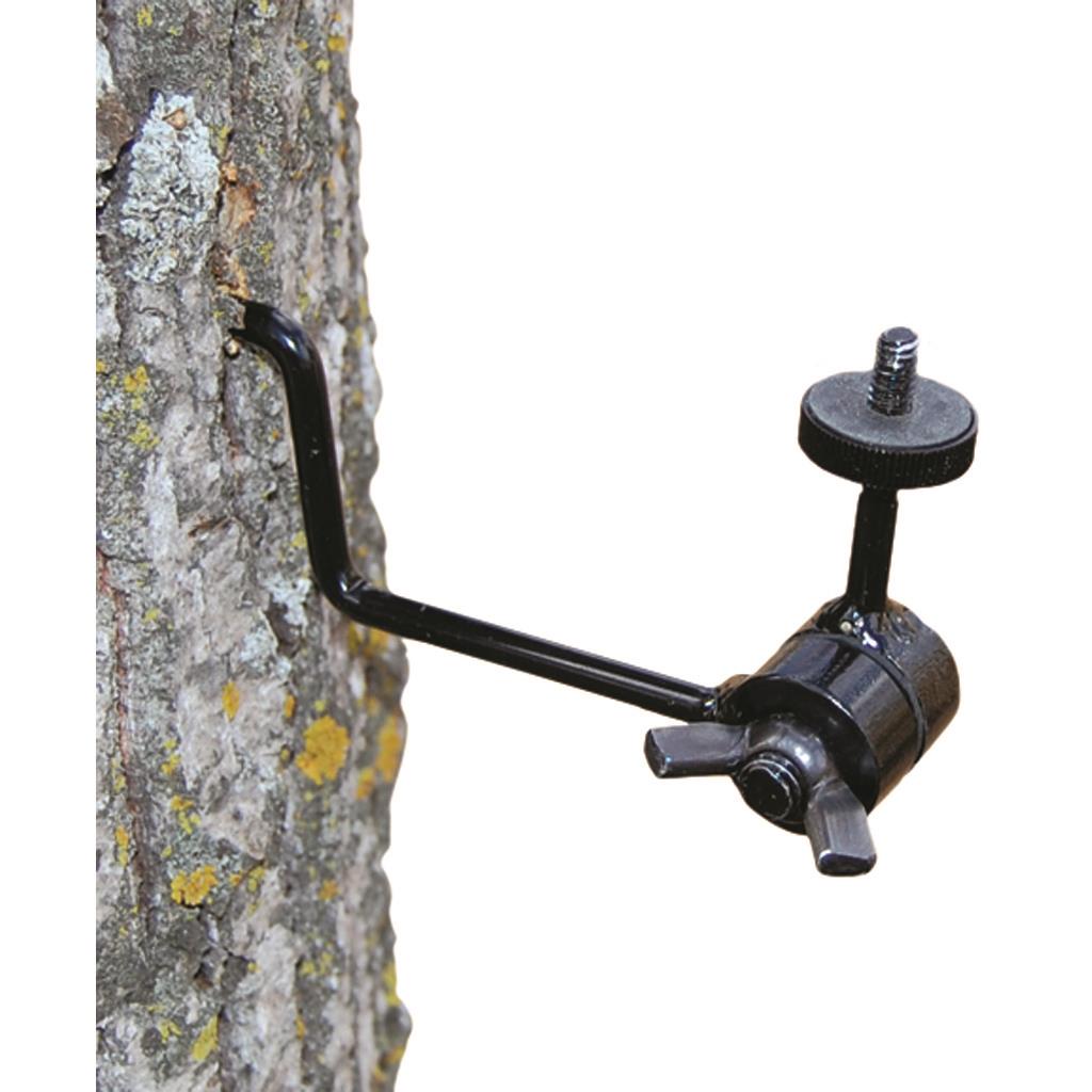 Easily screws into any tree and has a full 360 degrees of rotational adjustment along with 220 degrees of vertical adjustment. Made with a simple, compact and sturdy design to provide a dependable means for supporting all trail cameras with a 1/4-20 threaded bushing.