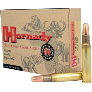 For dangerous game get Hornady Dangerous Game Series Centerfire Rifle Ammunition. Seasoned and amateur shooters can go for the solid DGS or the expandable DGX bullets made from a hard antimony and lead alloy and cased in copper-steel jacket for maximum penetration.