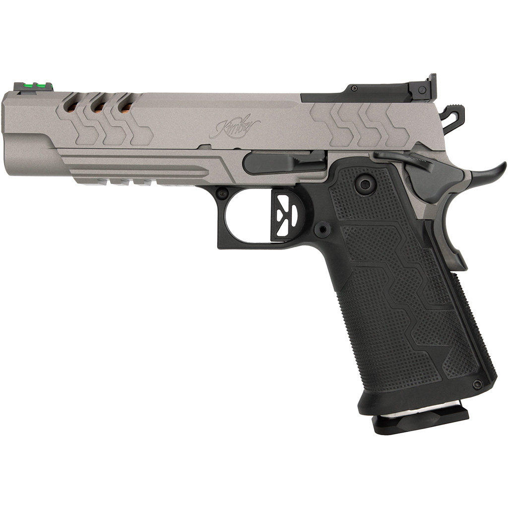 The Kimber 2K11 Stainless Target Pistol in 9mm sets a new benchmark for high-capacity 1911 performance. Designed from the ground up with input from Kimber enthusiasts, it features a 5-inch fluted, ramped stainless steel barrel with a polished Coyote PVD finish and 5R rifling for enhanced accuracy. The stainless steel slide includes custom 2K11 serrations, an external extractor for reliability, and TAG Fiberlok 2 sights with additional fiber-optic inserts. Its carbon fiber and Kevlar grip module offers lightweight strength and superior handling, paired with a stainless steel frame finished in matte KimPro Granite. A toolless guide rod, ambidextrous safety, and match-grade aluminum trigger complete this modern 1911 variant built for precision and control.