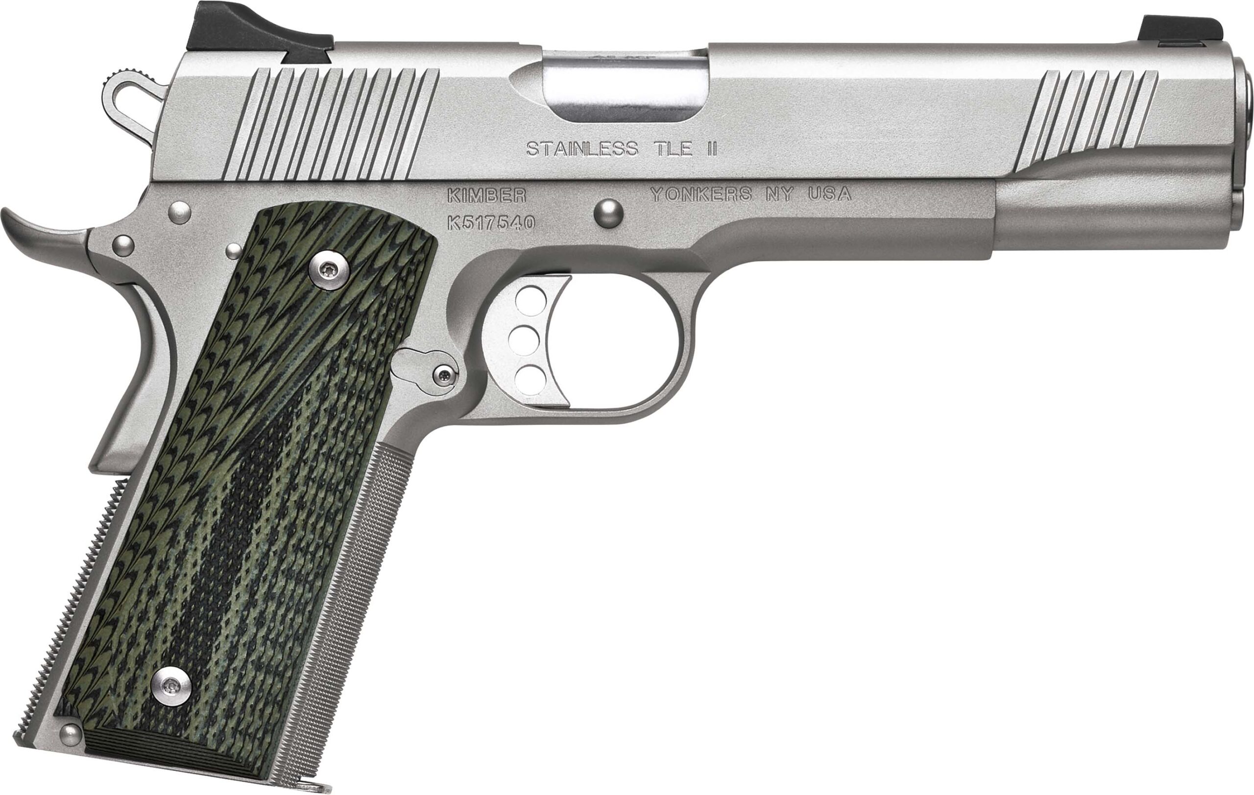 Stainless TLE II .45ACP, 5″, SS Pistol, Tritium Night Sights, 7rd Magazine, Green/Black G-10 Grips