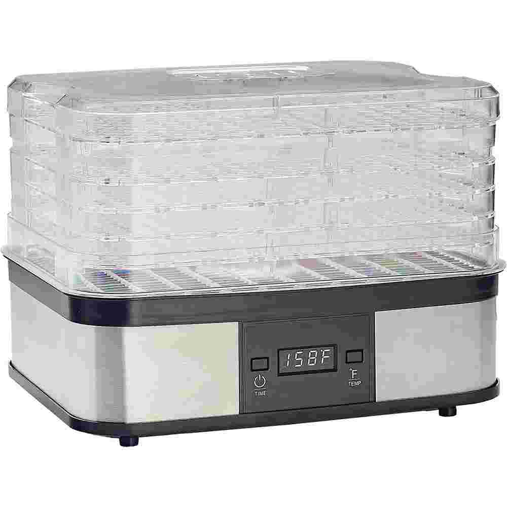 The LEM Dehydrator is the perfect countertop size for making tasty treats for you and your family. It has a chimney-like center that allows for even air flow and uniform drying. With the clear body you can easily monitor your food while it is dehydrating. The digital display is easy to use with an auto shut-off after time runs out.