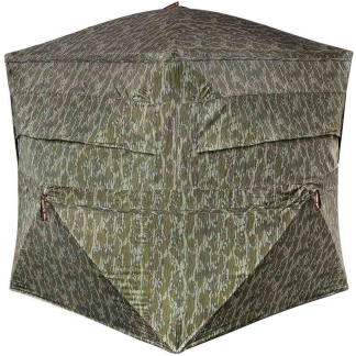 This blind delivers all the benefits of the Infinity Evo Ground Blind while pushing shooting and storage space to the absolute max. True to its name the Infinity Evo MAX Ground Blind delivers an expanded footprint standing height and shooting width all features that maximize the comfort and convenience of unrestricted mobility in the field. Thanks to its rugged Spider Hub frame the whole 65"L x 65"W water-resistant blind with its 82" x 82" shooting width goes up quickly and breaks down easily regardless of the conditions. Once set all-new Evo Mesh one-way see-through sliding curtains on the two 180-degree shooting windows allow you to take full advantage of the extra wiggle room by delivering a wide field of view conducive to most shooting opportunities. Pair that with two peek windows with self-fabric closures and you’ll enjoy ample visibility from nearly every angle. Another key feature of this spacious water-resistant blind is its memory wire window curtains that allow users to customize their window configurations for specific hunting scenarios. Inside the easy-access V-shaped zippered door hunters will find an all-black 150-denier interior complete with gear straps two upper ozone loft pockets and one large mesh storage pocket perfect for stowing and organizing must-have gear for as many as three hunters.