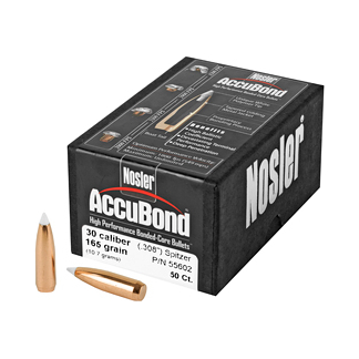Through an exclusive bonding process that eliminates voids in the bullet core, AccuBond(R) couples Nosler’s proven copper-alloy jacket with its special lead-alloy core. The result is a bullet that flies true, penetrates deep and retains its weight, without causing extensive barrel fouling. The unique white polymer tip resists deforming and initiates expansion on impact. Nosler’s Solid Base(R) at the rear of the bullet acts as a platform for large diameter mushrooms.