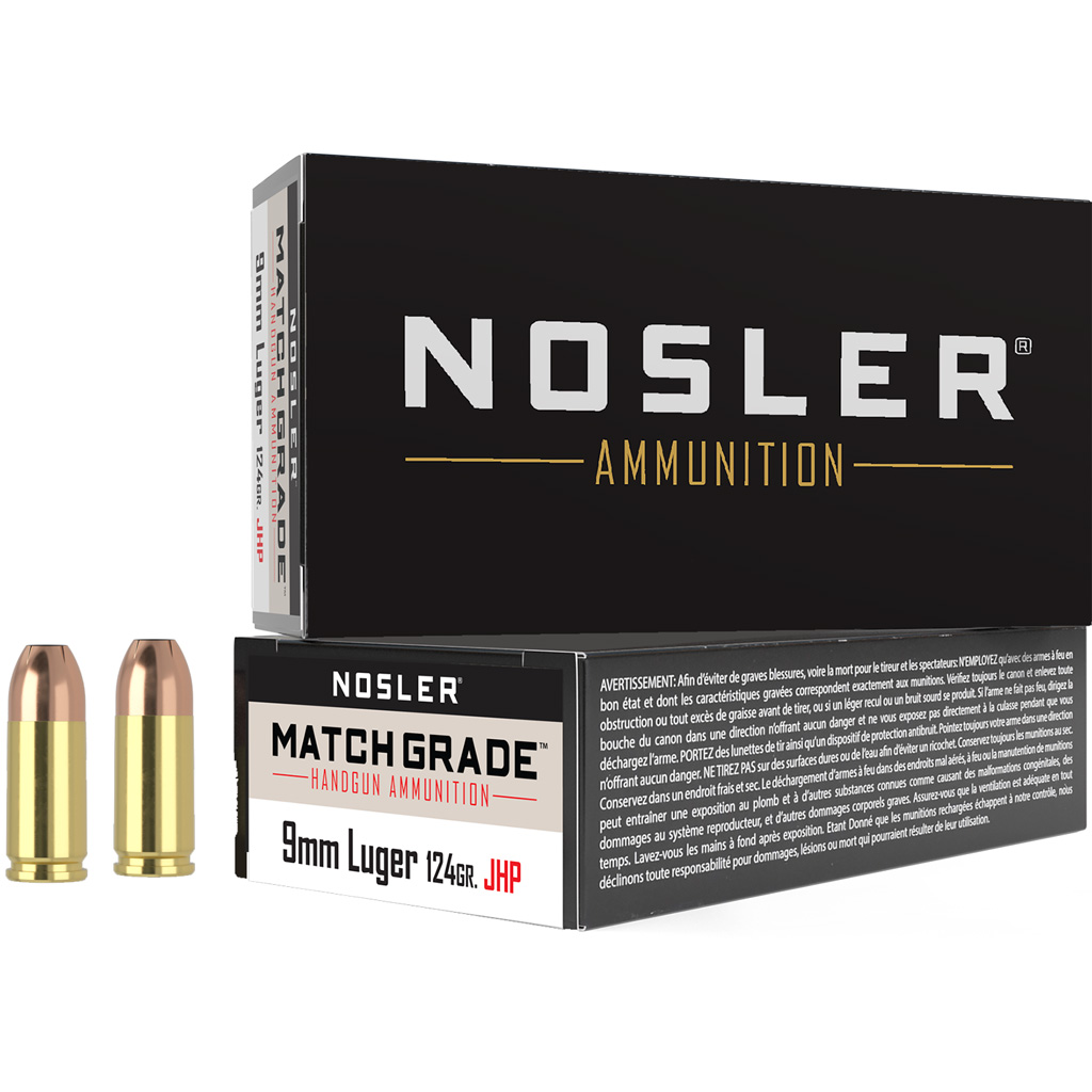 Nosler Match Grade Handgun Ammunition 9mm 124 gr. HG JHP 50 rd.