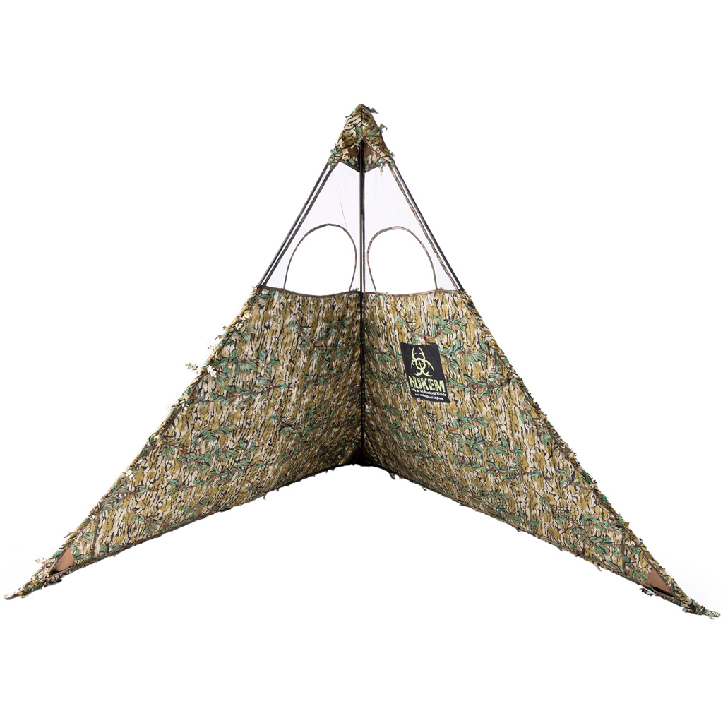 Discover unparalleled stealth with the Nukem Grab & Go Hunting Blind XL. This extra-large blind, easily set up in under a minute, offers a generous 9 feet width and adjustable 45-60 inch height, comfortably housing two hunters. Constructed from lightweight 150 Denier Nylon, it weighs only 3.5 pounds and collapses to 38 inches with an included carrying case and adjustable shoulder strap for effortless transport. Designed for ground-level use with a stake-free setup, it provides a swift and silent advantage in the field, complete with stubble straps for natural concealment.