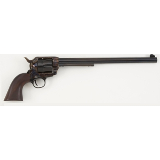 The 1873 GW2 Posse model features smooth walnut grip, color case hardened frame with blued cylinder and barrel, and front sight.