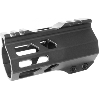 Black two-piece railed hand-guard for AR-15 carbines constructed of a high impact glass filled nylon polymer with integral aluminum heat-shield inserts. Features mil-spec Picatinny rails at the 12 3 6 and 9 o?clock positions for mounting sights tactical lights vertical grips and other accessories.