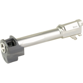 The Radian AFTERBURNER + RAMJET combo offers exceptional recoil reduction and match-grade accuracy in a concealed carry package. The threadless barrel design allows for easy installation and removal for cleaning. The AFTERBURNER compensator is machined from stainless steel, and the RAMJET barrel is made from hardened 416R SS; both feature a Radianite coating. This combination ensures low friction, high hardness, and excellent corrosion resistance, enhancing durability and preventing erosion from muzzle blast. Angled front faces on the AFTERBURNER help with holstering.