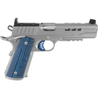 Rapide Heat .45ACP 5″ Black DLC Barrel KimPro II Black Finish Slide; Black & Red Pattern G10 Grips White Dot Sights; Picatinny Rail; KimPro II Red Aluminum V-Cut Trigger; Stiplex 1 x 8rd Mag