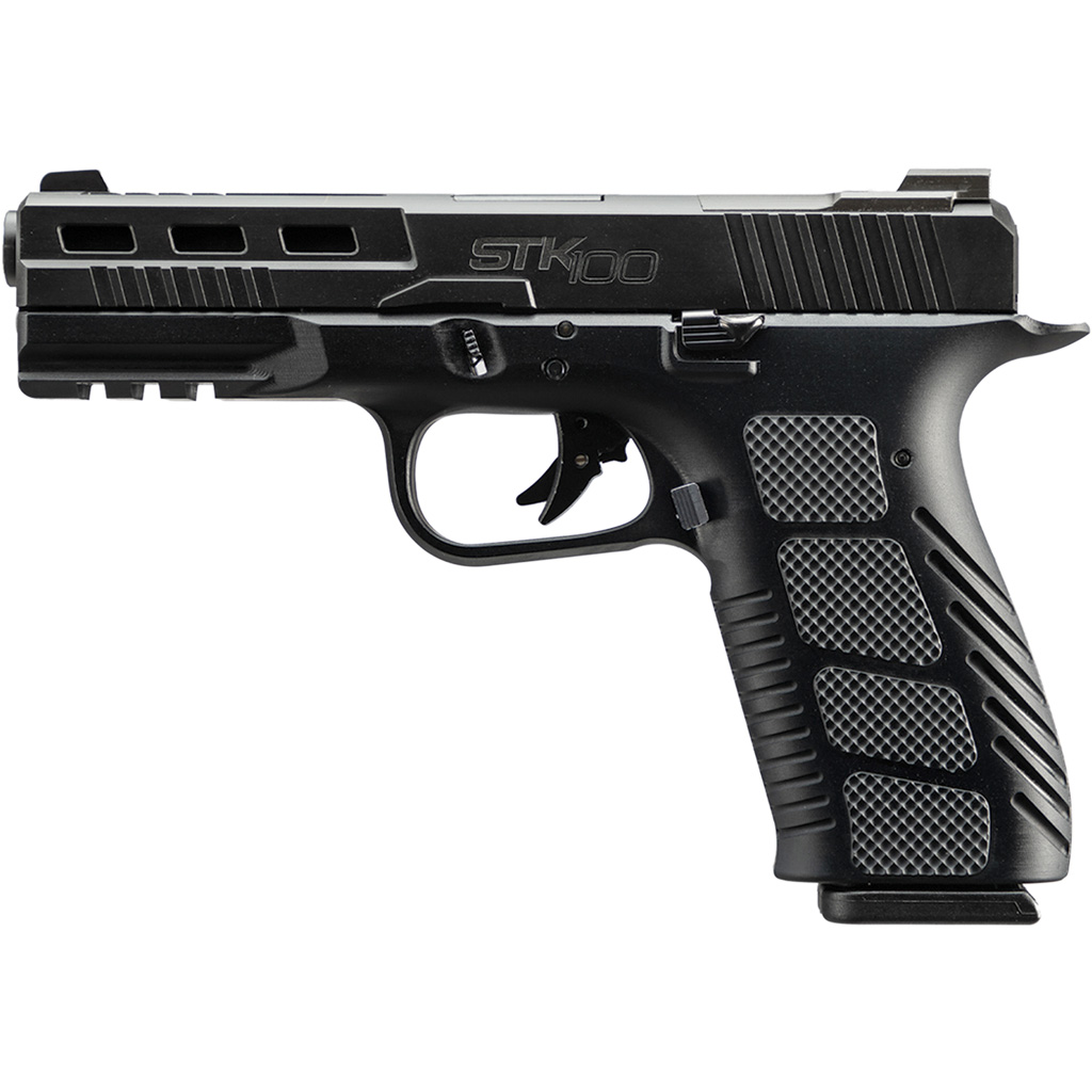 Rock Island STK100 Pistol in 9mm. 10 round magazine. 4.5 in. barrel Striker fired action. Black textured aluminum grips. Picatinny rail.