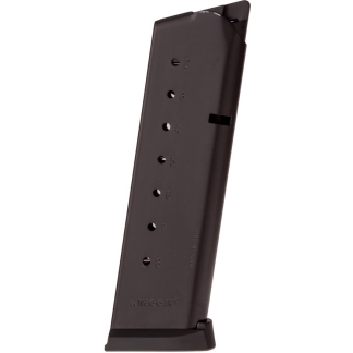 This magazine is compatible with the Ruger Mark I (Old Style), and is constructed of blued steel.