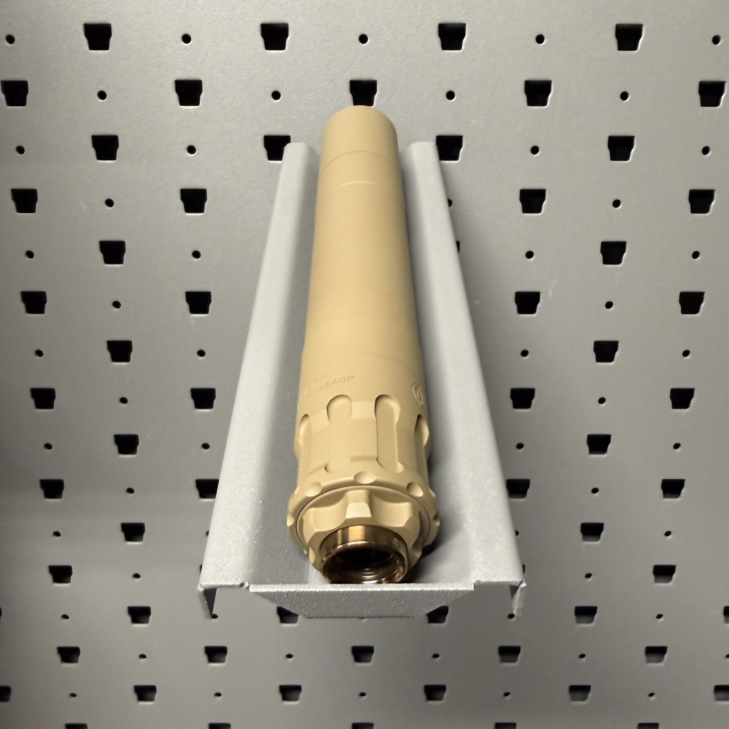 - Tuned for pistol calibers in the .45 family — balances suppression with minimal added length and weight.