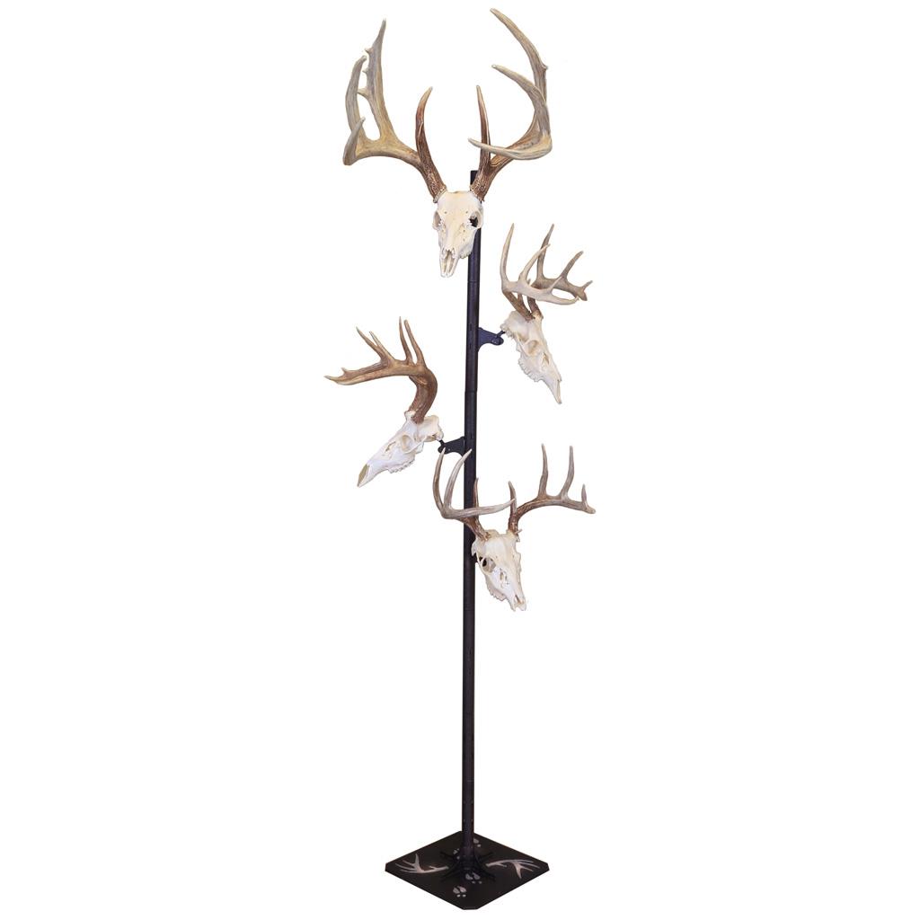 This sturdy and sleek floor display allows for complete customization of your trophy display. The trophy tree will take advantage of unused areas within an office or living room. The Trophy Tree is designed for variety of small to medium sized heads from around the world. Line heads up straight or stagger them from top to bottom. Complete your tree with one species type or display a variety. The customization options are nearly endless. The Trophy Tree’s pole stands nearly 6 feet high and each of its of its sections allows for 360 degree viewing angles with varied heights. The heavily weighted base is elegantly etched with an antler and hoof design. Constructed of strong powder coated steel. Comes with 5 arm/prong attachments.