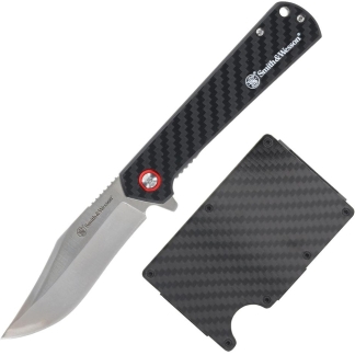 The knife included in the combo is the Smith & Wesson Hostage Rescue Team folding knife engineered for reliable everyday carry and tactical use. Measuring 7 inches overall with a 3-inch high carbon stainless steel blade it features a tanto point for piercing and precise cutting. The blade is coated in black oxide for corrosion resistance and a tactical low-glare finish. Its plain edge allows for efficient slicing while the thumbstud and flipper opener provide quick smooth one-handed deployment. A liner lock keeps the blade securely in place during use and the tip-down pocket clip allows for safe convenient carry. The brown polymer handle is ergonomically designed offering a secure and comfortable grip even in wet or slippery conditions.