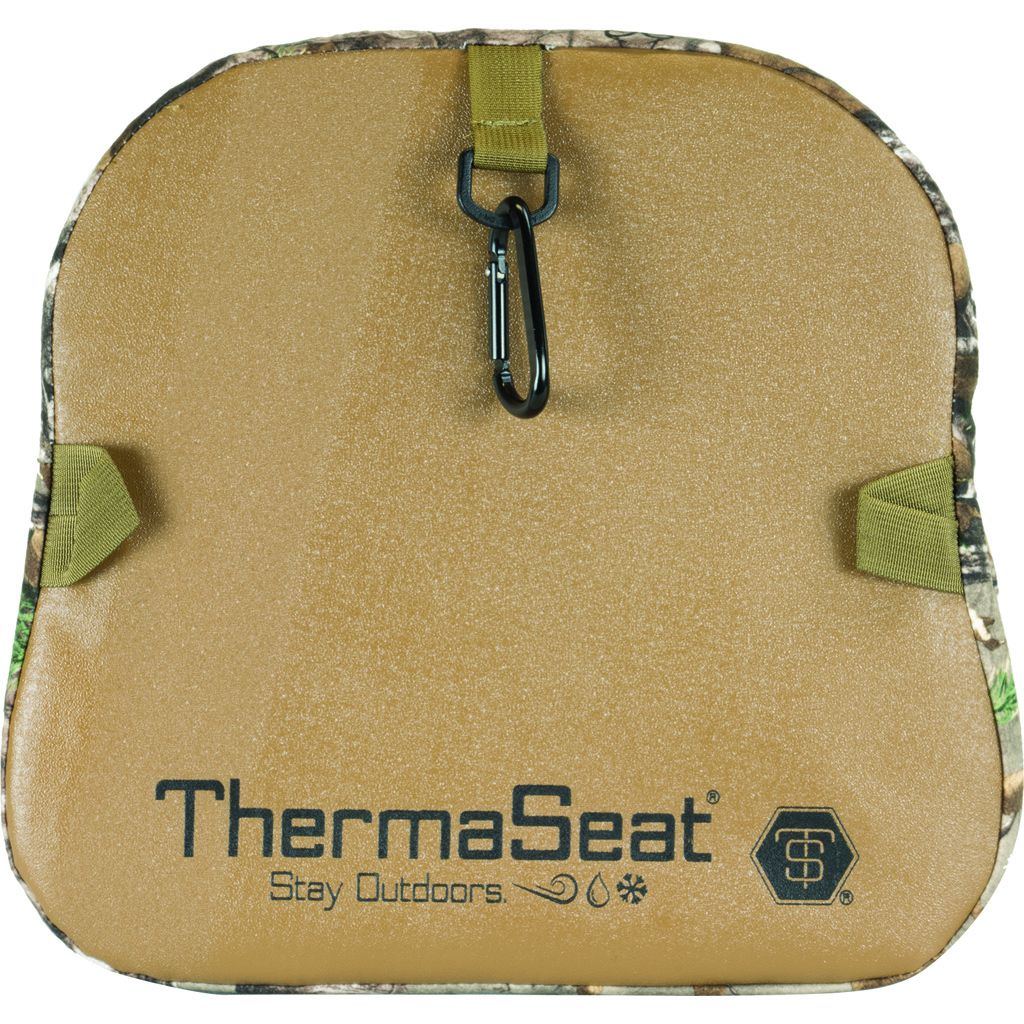 The Infusion Seat is triple-layered designed for the ultimate in performance and comfort. A thermal barrier 3/8 inch layer of Softek closed-cell foam provides for maximum heat retention. A comfort barrier of 1 3/8 inches of premium, furniture-grade urethane Comfotek foam provides unmatched comfort. An earth barrier of 1 3/8 inch layer of rigid, closed-cell foam creates a barrier between the cold, wet ground and your backside. Plus, a waterproof polyurethane-coated outer fabric adds another layer of protection. This fabric is also freeze-proof so it won’t get hard in sub-zero temps. Includes an aluminum carabiner clip for easy transport.