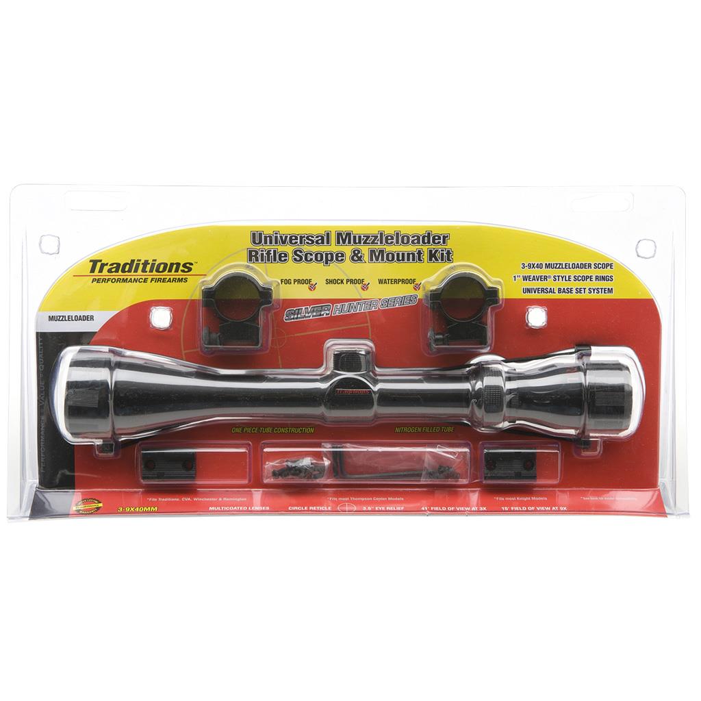 Quality, fully sealed optics specifically designed for the recoil and shooting range of Traditions muzzleloading rifles. Traditions 3-9×40 Scope Package includes bases and rings.