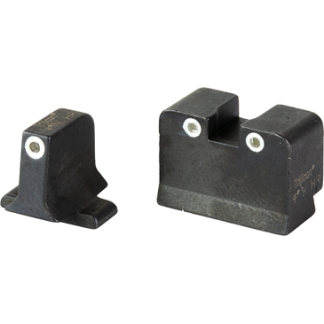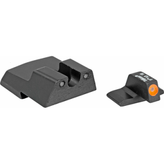 S&W M&P Shield HD Night Sight Set Yellow: The HD Night Sights were specifically created to address the needs of tactical shooters. The three dot green tritium night sight set’s front sight features a taller blade and an aiming point ringed in photoluminescent paint while the rear sight is outlined in black and features a wider U-shaped notch. This unique configuration increases visibility and quickens front sight acquisition even in transitional lighting. Additionally, the front surface of the rear sight is steeply hooked to assist in emergency one-handed slide operation. Green tritium lamps are warranted for 12 years from date of manufacture.