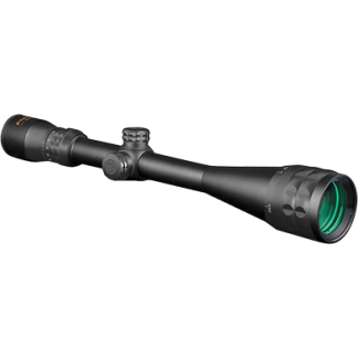 3-9 x 42mm Illuminated Duplex Mil-Dot. One-piece aircraft grade aluminum tube. 30mm main tube Rheostat controlled. Locking target turret. 1/4-MOA per click. Locking BDC target turrets. 1/4-MOA per click (Includes .223 and .308 calibrated turret caps) Flip-up Monolithic aluminum mount included