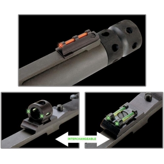 Rifle style rear sight that includes two interchangeable rear sights. The front sight fits under vented rib and fastend, the sight has a single .060” diameter fiber optic and the rear double fiber optic is .029” diameter. Designed only to be installed on a shotgun barrel with ventilated or solid ribs. Has an integrated level for consistent alignment with gravity and is all metal construction, full windage and elevation adjustment.