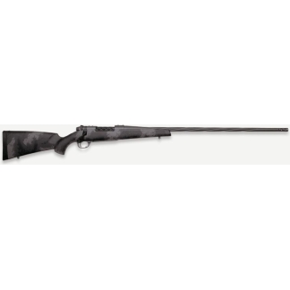 The Mark V Live Wild Rifle features a lightweight design, allowing easy backcountry maneuverability. The rifle boasts a signature Mark V action with a multi-lug bolt system for unwavering strength and reliability. It features a spiral-fluted barrel compatible with suppressors, a recoil-reducing Accubrake ST, and a Carbon Grey Cerakote finish for element resistance. Designed with attention to detail, it sports a hand-painted stock and ergonomic enhancements for a comfortable and stable grip.