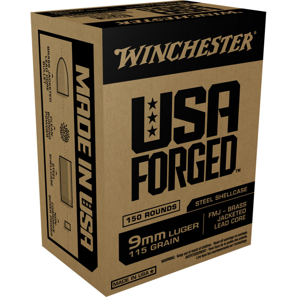 Winchester USA Forged- Steel Case Handgun Ammunition 9mm Luger 115 gr FMJ 1190 fps 150/ct