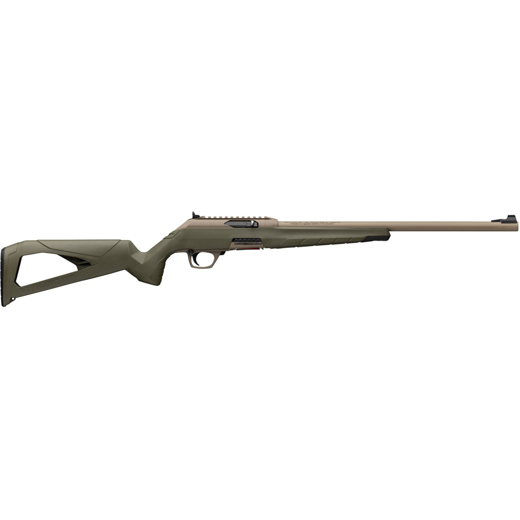 The Winchester Wildcat is a lightweight, rugged, and innovative semi-automatic rimfire rifle chambered in .22 LR. Designed around a striker-fired system, it offers faster lock time and improved reliability with rimfire ammunition. The 18-inch precision button-rifled barrel features a Flat Dark Earth Perma-Cote finish, while the molded polymer stock and receiver provide a durable, ergonomic platform. Its drop-out lower receiver assembly allows easy access for cleaning, and it includes features like fully ambidextrous magazine release, spring-assisted ejection, and a Picatinny rail on the upper and underside for optics and accessories. The Wildcat accepts 10-round rotary magazines and is compatible with aftermarket 10/22 magazines, making it a versatile and user-friendly rimfire rifle.