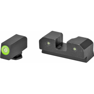 XS R3D Night Sights feature a traditional 3-dot tritium, notch and post sight picture. The blacked-out rear increases contrast against the front sight. The front sight is available in orange or green and is equipped with Ember(R) Glow Dot Technology. Ember absorbs ambient light and glows in low light. The front tritium lamp charges the Ember dot making the front sight glow brighter than the rear at all times, keeping focus downrange. R3D sights are the brightest notch and post option for fast and accurate shooting in bright and low light.