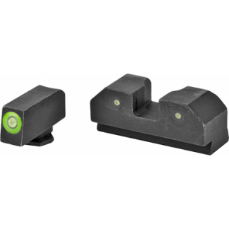 XS R3D Night Sights feature a traditional 3-dot tritium, notch and post sight picture. The blacked-out rear increases contrast against the front sight. The front sight is available in orange or green and is equipped with Ember(R) Glow Dot Technology. Ember absorbs ambient light and glows in low light. The front tritium lamp charges the Ember dot making the front sight glow brighter than the rear at all times, keeping focus downrange. R3D sights are the brightest notch and post option for fast and accurate shooting in bright and low light.