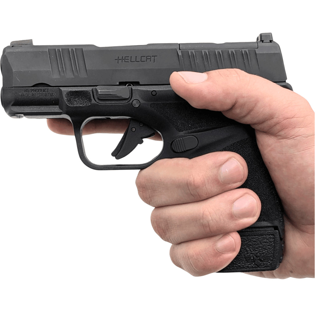 The XTech Grip Extension for Springfield Hellcat 10-Round Magazines is the perfect upgrade for shooters in magazine-restricted states, providing improved grip and control without increasing magazine capacity. Designed to replace the factory baseplate, this extension offers full pinky support, enhancing handling and comfort for users with larger hands. Made in the USA from high-impact polymer, the durable and lightweight design ensures reliable function while maintaining the compact profile of the Hellcat. Installation is quick and secure, utilizing the magazine spring for stability. Ideal for California-compliant Hellcat models, this grip extension allows for a better shooting experience without switching to a larger frame.